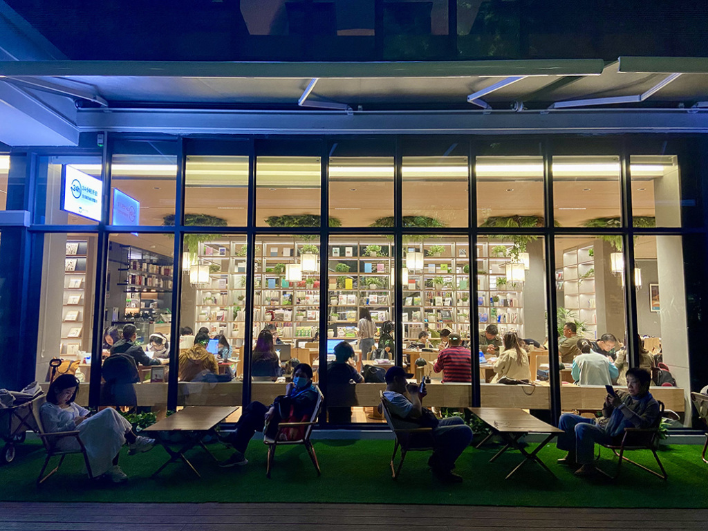 持续两三小时的喧闹,让附近部分居民和图书馆读者不堪其扰。作为上海首个24小时公园图书馆,和平书院于2024年4月正式开馆,不少市民将这里视为夜间自习好去处。